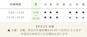 ※祝日は休診日となる場合もあります